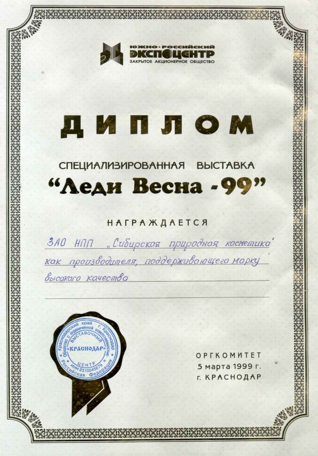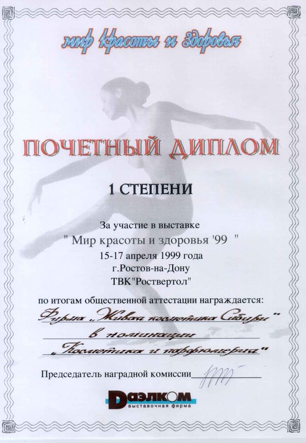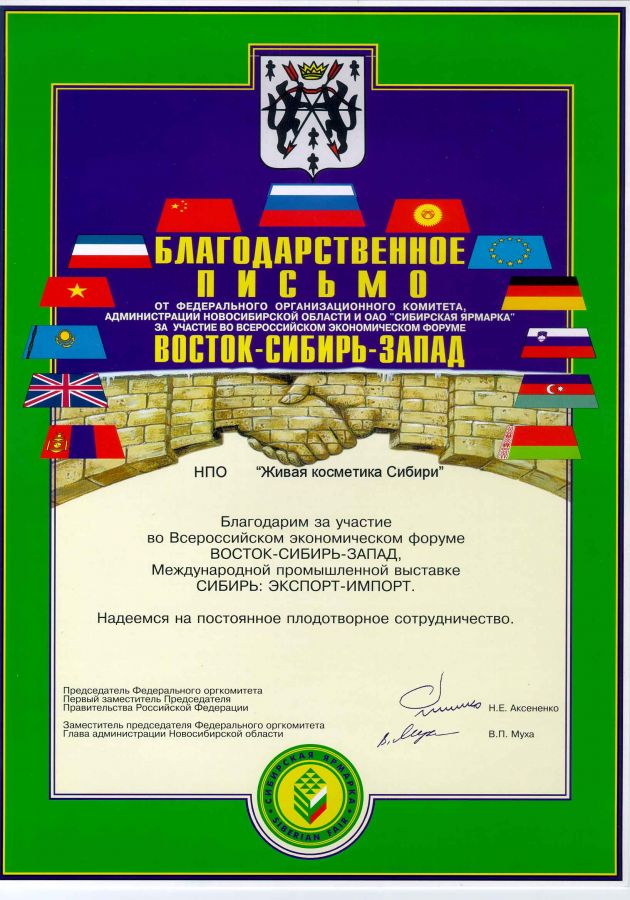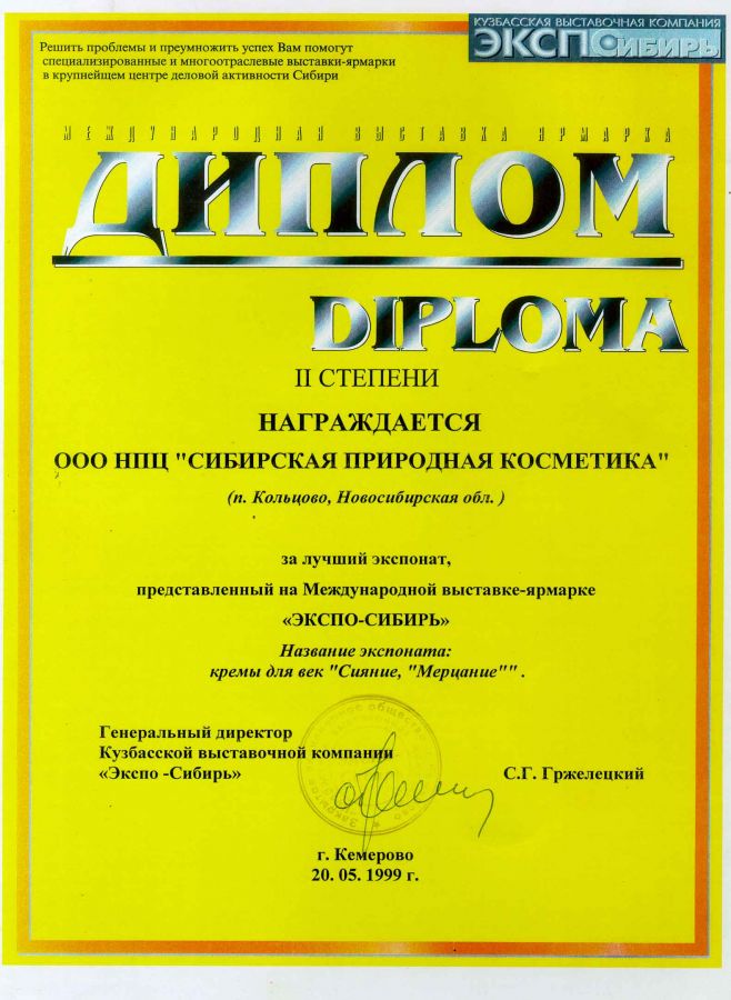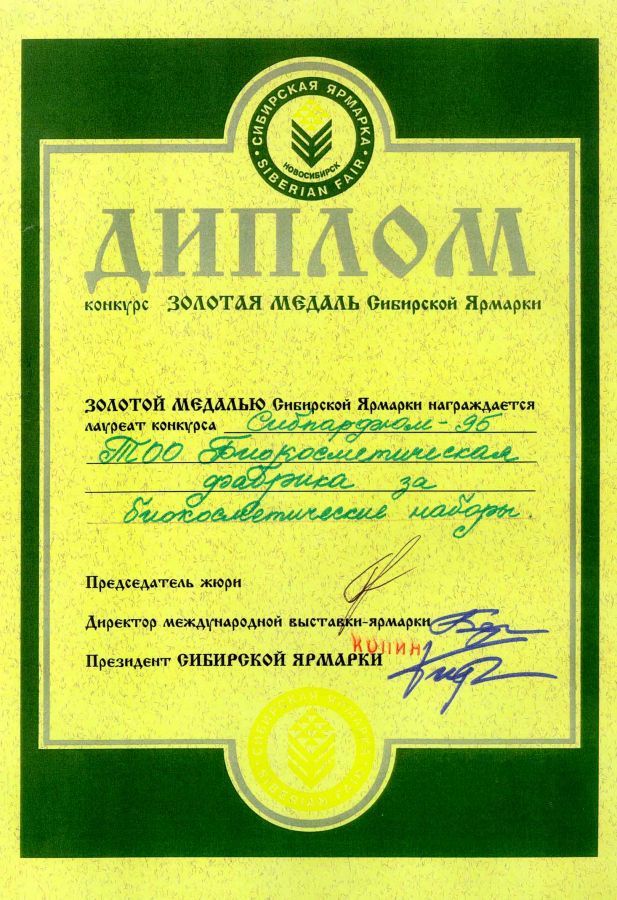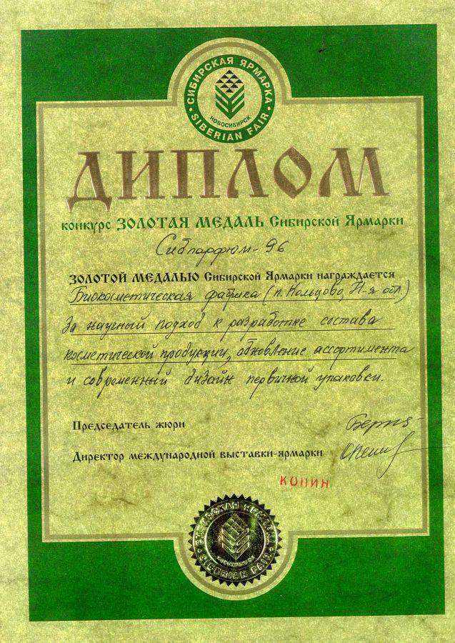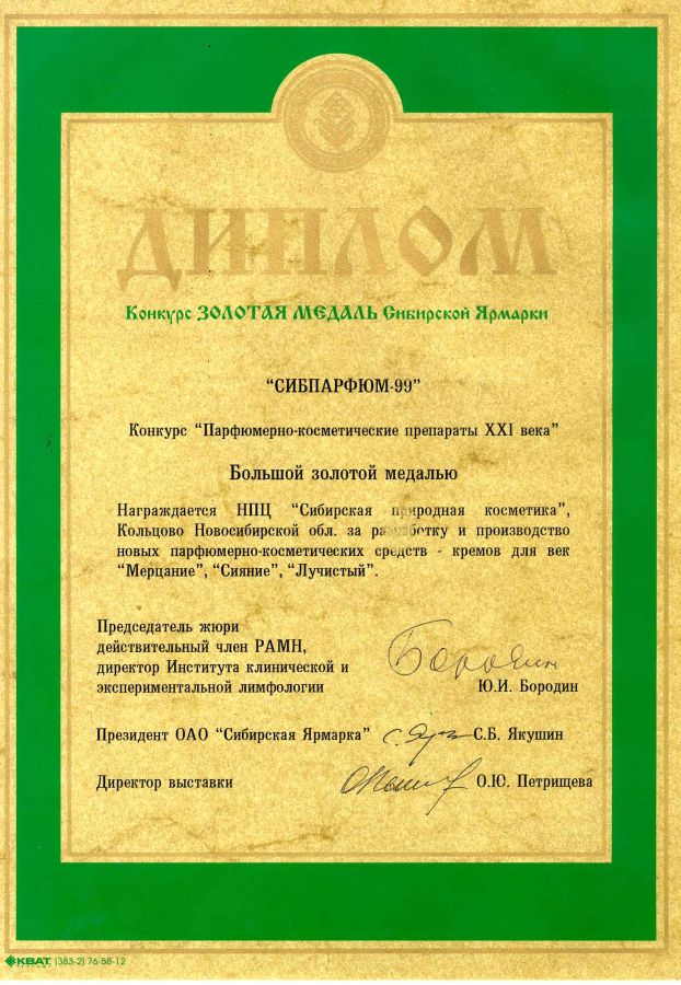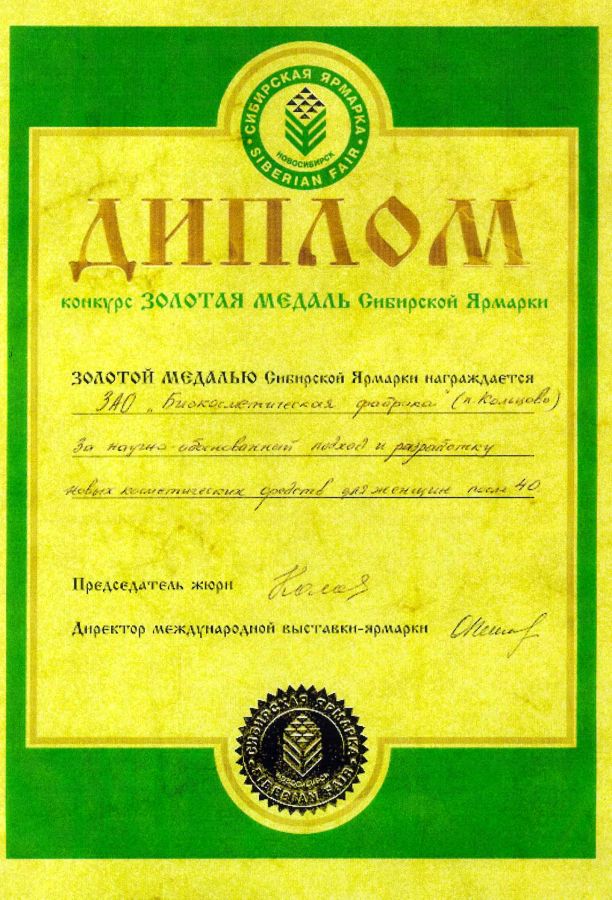 Использование современных достижений науки позволило разработать серию уникальных кремов и косметических кремовых наборов, отмеченных Большими золотыми медалями Сибирской ярмарки: