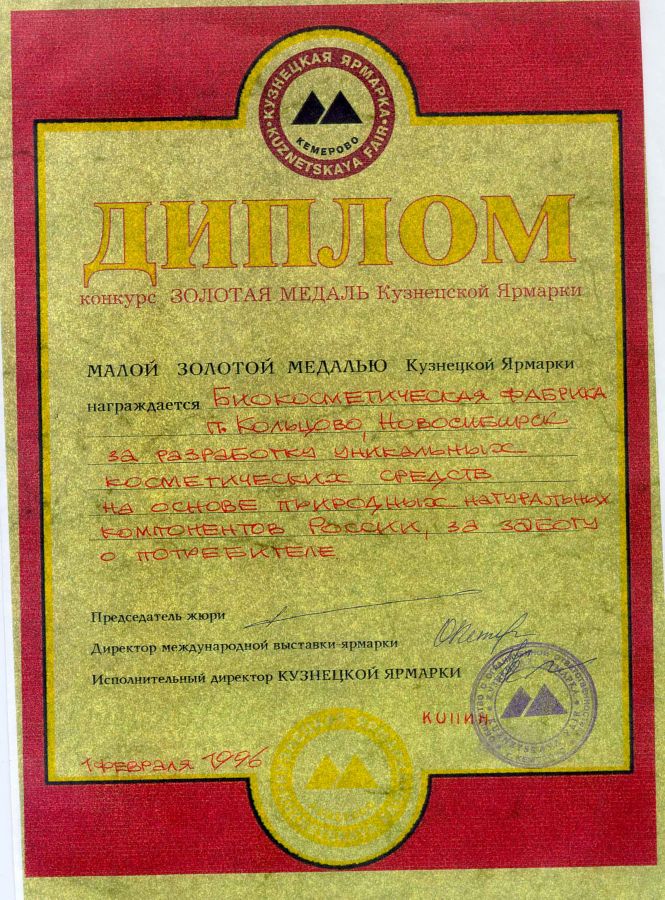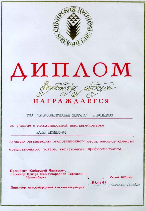 наши препараты были отмечены Малой золотой медалью Кузбасской ярмарки